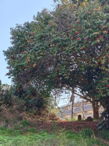 かつて人と祈りが行き交ったこの土地に、今年も何事もなかったように、大椿が満開を迎えています。